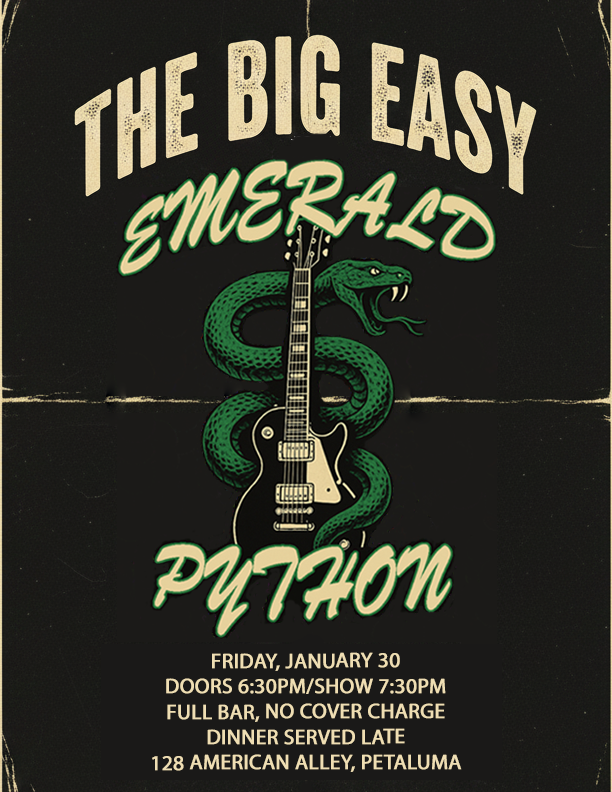 The Big Easy 128 American Alley, Petaluma, CA, United StatesEmerald Python is an electrifying cover band from the SF Bay Area made up of three seasoned musicians who live and breathe rock 'n' roll. With infectious energy, they bring […]